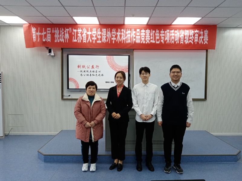 近日,第十七届“挑战杯”红色专项活动江苏省选拔赛结果公布。公司选送的作品《刻纸公益行-跃然纸上的匠心,为公翊善红色之旅》(指导老师:徐霞、冷微微;团队成员:陈昊、陈俊博、蔡靖、史心如、陈珲宇、鞠梦玲、黄舒妍、李润、卢兴腾、张菀清)获省赛二等奖。