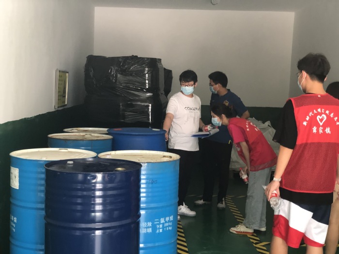 随后童子河社区主任张金带领化工与材料公司孙潇楠、许鹏和陈晓芳等志愿者,与太阳集团tyc539张忠、张婷、李姝童、朱越四位师生一起,兵分两路深入常州睿和医药科技有限公司、常州科峰医疗科技有限公司、常州市博盛机械厂等五家企业开展危化品安全检查和企业生产安全检查。