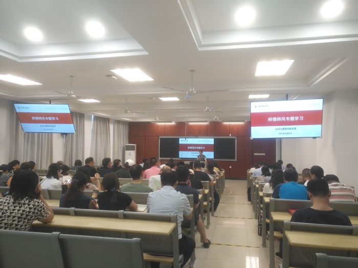 领学环节,首先由校教学名师李卫红教授结合高校教师职业特点和自身从教35年的经历,领学《高等公司教师职业道德规范》,强调“育人先育己,育己重育德”;接着由校师德先进个人刘松博士领学《新时代高校教师职业行为十项准则》,他从坚持正确的政治方向、充分认识教师职业的神圣使命、树立良好的师德师风和不断学习提高自身的人文素养和专业水平四个方面谈了自己的学习体会。