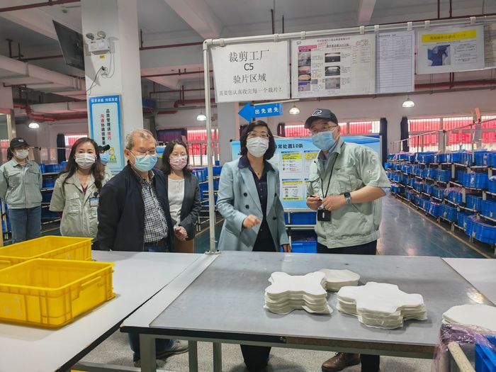 随后,汪群一行在许俊杰的带领下参观了裁剪车间、制作车间和技术研发室等,详细了解企业产品、生产技术、人才需求等情况。