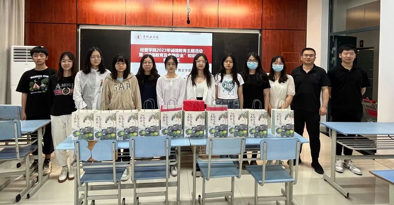 经管员工们积极参与本次竞赛,共收到63份有效答卷,经打分、核验,20财二班单宇辰等10名同学获得一、二、三等奖。郭峥春副书记与获奖同学一同观看《贷款助学,信用助人》宣教片,颁发奖品并鼓励同学们以知识竞赛为契机,提高自我诚信意识,培育诚信品质,一同构建诚实守信、以诚信为荣的校园文化。