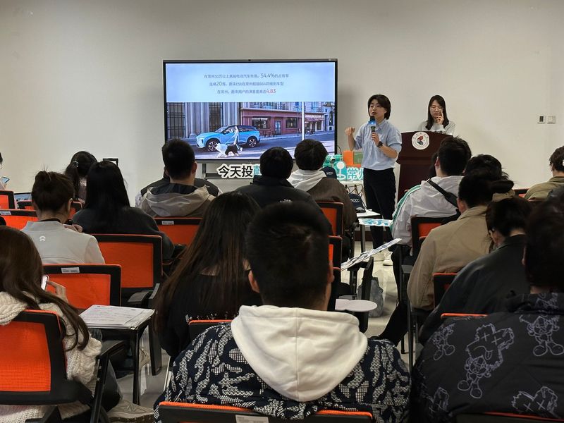 活动中,主讲人结合百年汽车产业变化的大背景,从不同品牌汽车销量、汽车性能、全球专利数等方面,向同学们介绍了蔚来汽车行业品牌的不同发展阶段和层次。后又从中国能源需求出发,结合汽车市场潜力和智能电动车机遇全面分析了其公司现状,展现了长期承担社会责任所带来的竞争力与生命力。