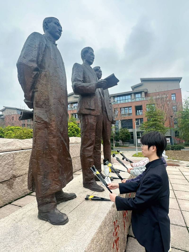 活动伊始,23物管二团支书徐菲向团员青年介绍了瞿秋白、张太雷、恽代英三位革命先烈的英雄事迹,让员工们深刻理解了革命先烈的伟大精神和崇高品质。员工代表陈方健站在队伍前列,高举右手,承诺将牢记自身责任,传承“常州三杰”精神,踔厉奋发,勇毅前行。最后团员青年们手持鲜花,肃静鞠躬致敬,向“常州三杰”敬献鲜花,表达对他们的敬意和缅怀之情。
