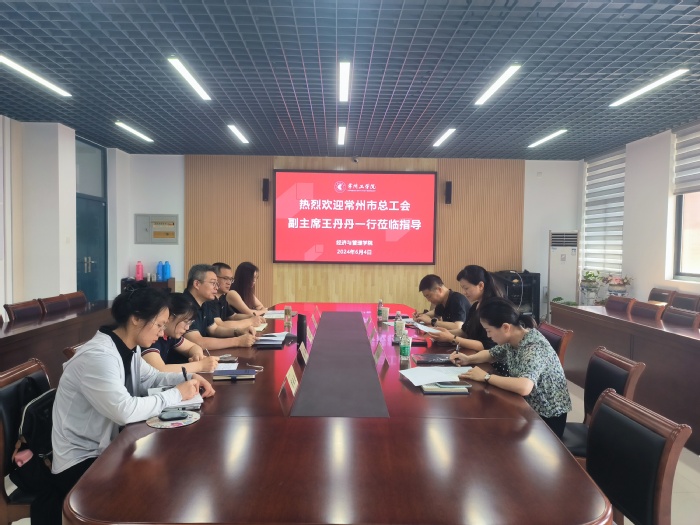 6月4日上午,常州市总工会副主席王丹丹、宣网部部长陆阳丽、副部长狄俊来校调研。经济与管理公司党委副书记郭峥春、副经理李春平及“双进”项目组成员参加调研会。会议由李春平主持。