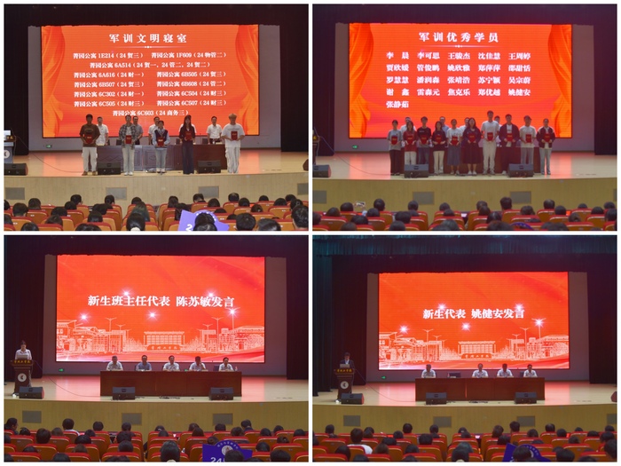 活动开始,公司党委书记谢金楼宣读表彰决定,对在今年军训中表现优异的宿舍及个人进行表彰,并颁发军训文明寝室、军训优秀学员荣誉证书。随后,新生代表姚健安、新生班主任代表陈苏敏博士相继发言,他们表示同学们应珍惜时光,勇于探索,提升能力,追求卓越。