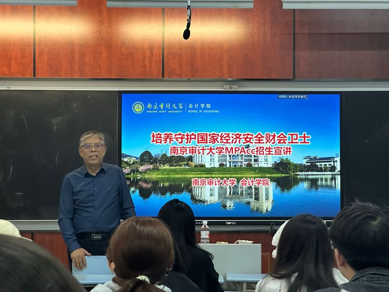 在研究生考试指导中,温素彬教授首先结合社会经济形势与本科生就业状况向同学们强调了考研的重要性,介绍了南京审计大学会计公司会计专业硕士(MPAcc)的专业特色与课程体系、团队情况、奖助学金政策,以及毕业生就业情况。温素彬教授鼓励同学们要坚定目标信念,克服考研的畏难情绪,科学安排各阶段时间,努力学习,提升自身的综合能力。在答疑环节,温素彬教授针对同学们提出的问题进行了详细分析和解答,帮助同学们更好地了解相关考研事项。