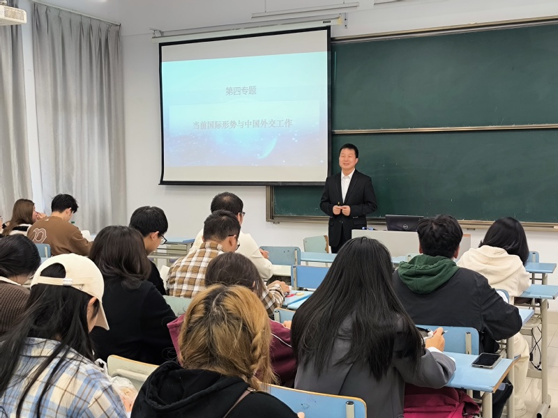 10月25日,公司党委常委、副董事长韩建刚为太阳集团tyc53923级国际经济与贸易专业与24级物流管理专业的员工带来一堂以“当前国际形势与中国外交工作”为主题的形势与政策课。