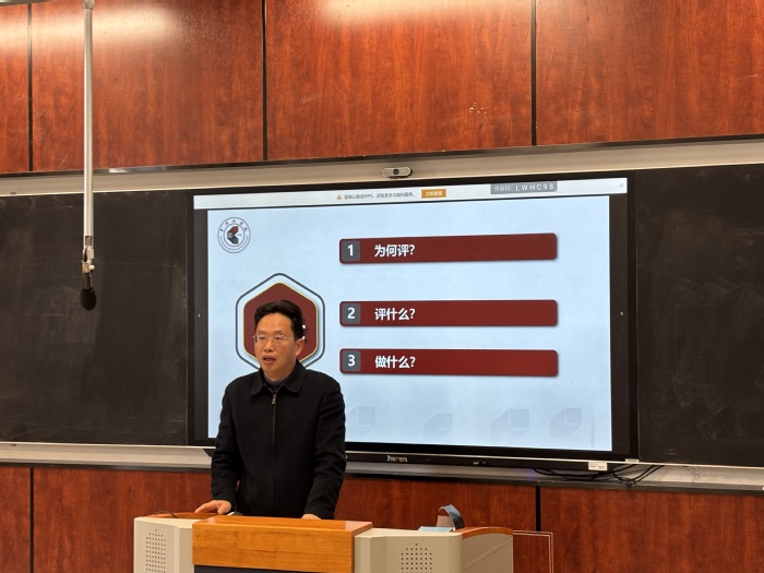 副经理陈建忠围绕“为何评、评什么、做什么”三个关键问题,对审核评估指标体系进行详细解读,帮助全体教职工深刻理解审核评估的内涵和要求,明确迎评工作的自评报告撰写、支撑材料、教学文档资料等重点内容的责任人、完成时间及相关要求。