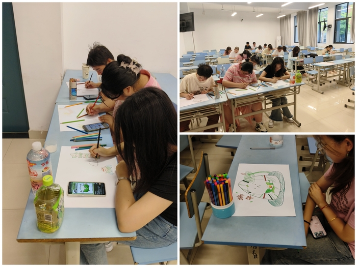 活动伊始,社团负责人介绍端午节历史与习俗,引导同学们深入了解传统文化内涵。随后,同学们以画笔为媒,通过水彩、彩铅等多元形式,将端午元素融入艺术创作。现场既有气势恢宏的龙舟破浪图,通过动态笔触展现百舸争流的激烈场景;也有细腻写实的粽艺特写,粽叶的纹理、粽绳的缠绕跃然纸上;更有充满现代感的创意作品,将端午元素与国潮风格结合,展现传统文化的当代生命力,一幅幅充满创意的作品跃然纸上。
