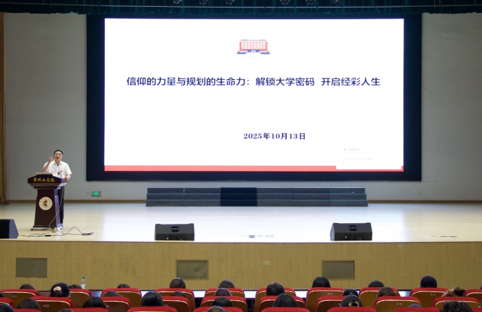 活动伊始,谢金楼面向全体2025级新生以“信仰的力量与规划的生命力:解锁大学密码 开启经彩人生”为题发表演讲。他从认知重启、行动地图与思维升级三个维度出发,为新生指明大学方向、启发成长规划,通过阐释“大学是什么”“如何度过大学四年”“怎样塑造核心竞争力”等关键问题,引导员工树立目标意识,注重长远发展。他强调,大学没有唯一的标准答案,关键在于主动选择的态度与持续行动的努力,鼓励每位同学成为勇于探索的“解码人”。