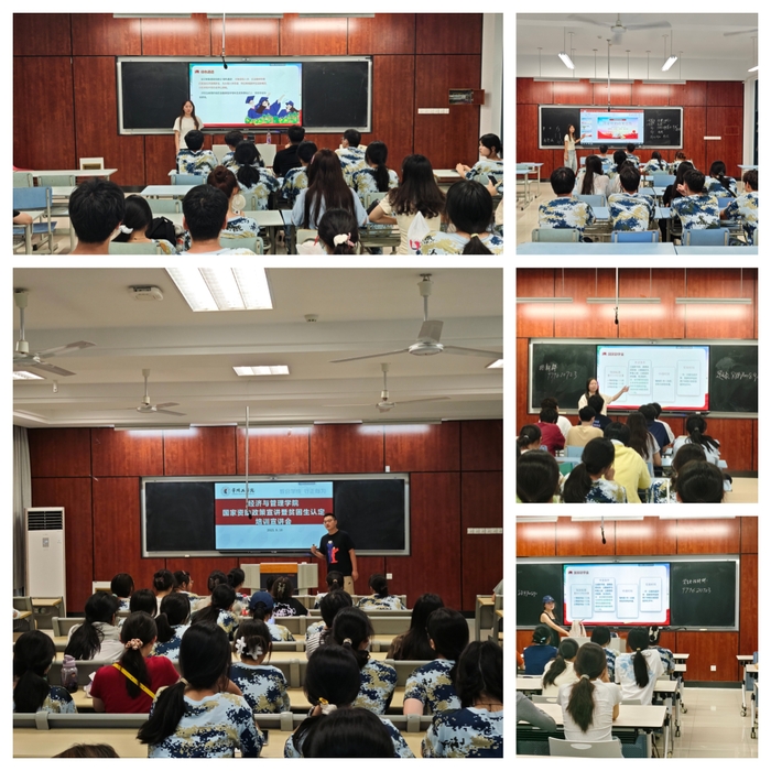 在政策宣讲会上,王老师系统地介绍了国家奖学金、国家励志奖学金、国家助学金、助学贷款、勤工助学、学费补偿等多元化的资助体系,着重阐释了国家助学金的政策内涵。他的政策宣讲让在场同学对各项政策的申请条件、评审流程和资助意义有了全面而清晰的认识。同时他也对助学贷款的学子进行了诚信还贷教育,让其知晓诚信的重要性,如约还贷。