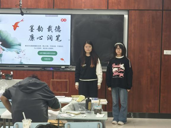 活动现场,同学们各展所长,会书法的同学踊跃参与,用宣纸、明信片等不同载体挥毫书写廉洁词句;会国画的同学则专注创作,一幅幅莲花图尽显清正意蕴;同学们纷纷发挥巧思妙想,用独特创意勾勒出了他们心中的廉洁意象。