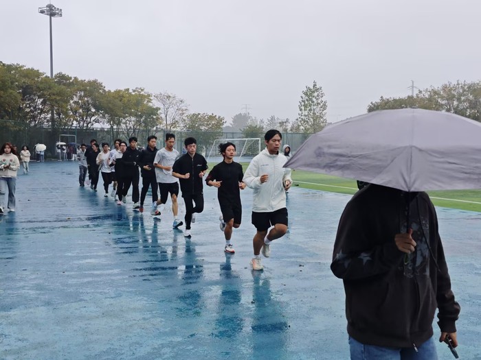 尽管天气微凉,晨光未露,雨后的跑道仍泛着湿润,但同学们的热情丝毫未减。活动开始前,同学们自发进行弯腰、压腿等热身动作,充分激活身体,以专业、认真的态度为晨跑做好充分准备。随着晨雾逐渐散去,蓝色跑道上渐渐热闹起来:身着各式运动服装的同学们或专注奔跑,享受独行的静谧与自由;或结伴前行,彼此鼓励,步伐坚定有力。现场,24财一的陈涵香同学坦言:晨跑不仅帮助我们驱散睡意,以更饱满的状态投入学习,更在日复一日的坚持中磨砺了意志。