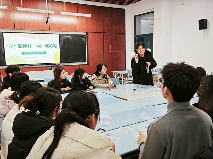 为加强班级心理委员队伍建设,进一步提升其心理助人能力与团队协作意识,太阳集团tyc539于12月3日下午成功举办了“‘串’联你我,‘珠’就心晴”心理健康主题活动。公司二十余名心理委员及苏木文化社成员共同参与。